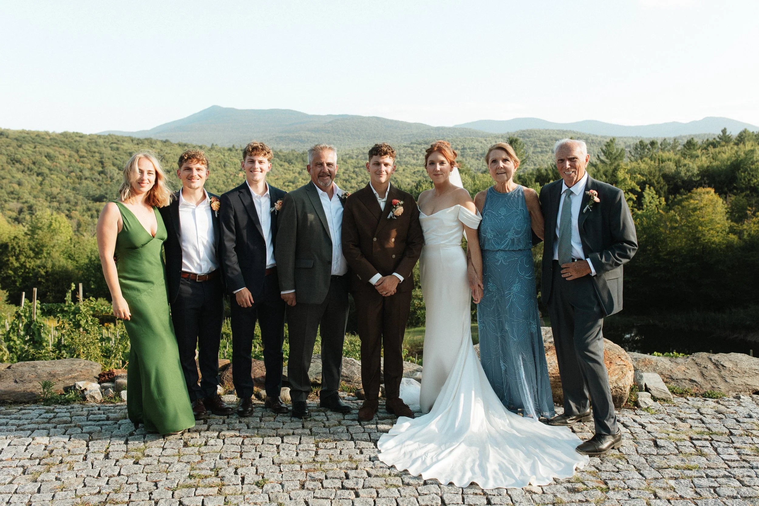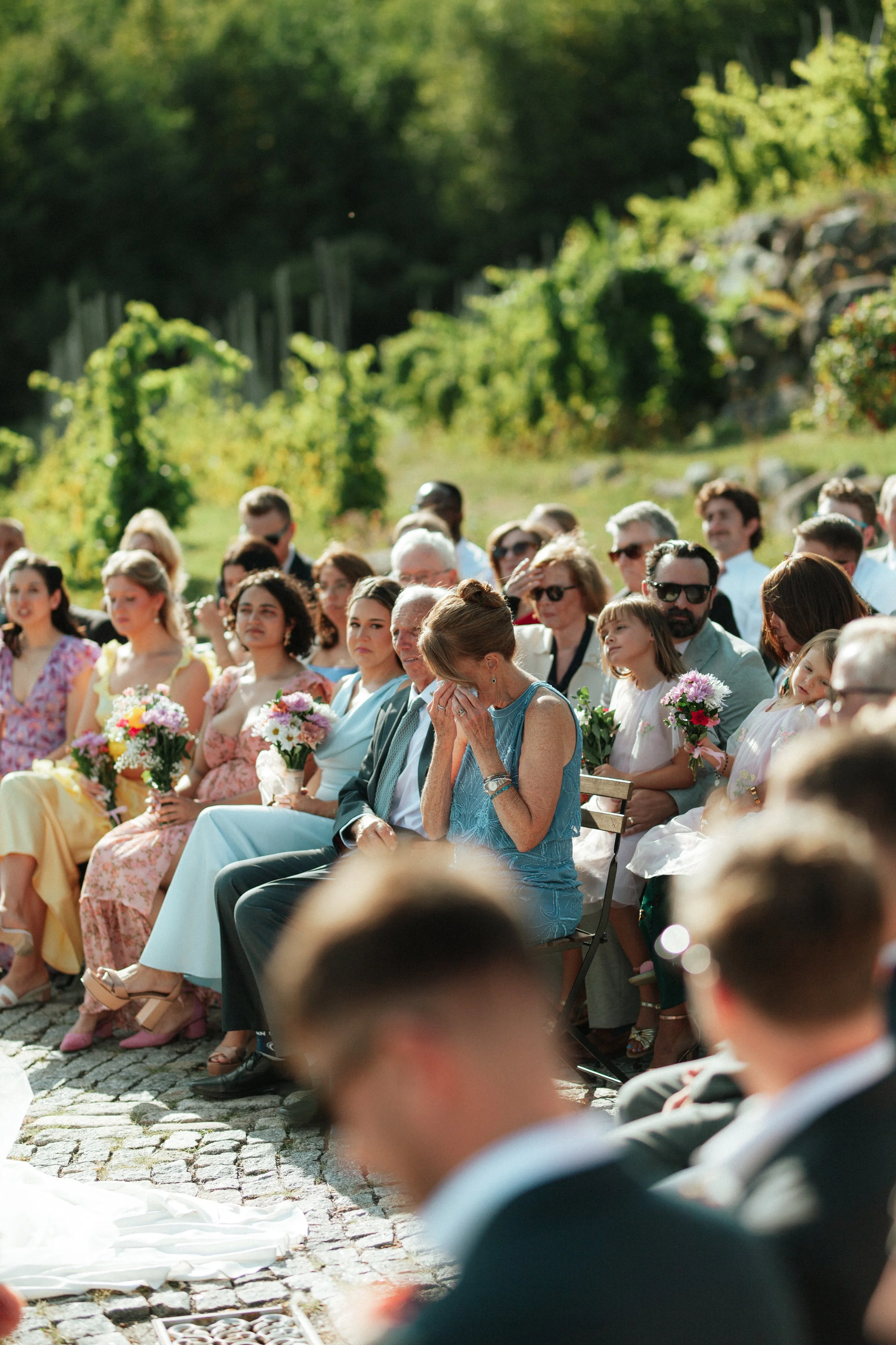 They had the most beautiful weather, warm sun, blue skies, and that soft golden light that makes everything glow. For dinner, they chose one long table, which made the evening feel even more intimate. Everyone was gathered together, sharing food, stories, and laughter, with no separation just one big, joyful group.